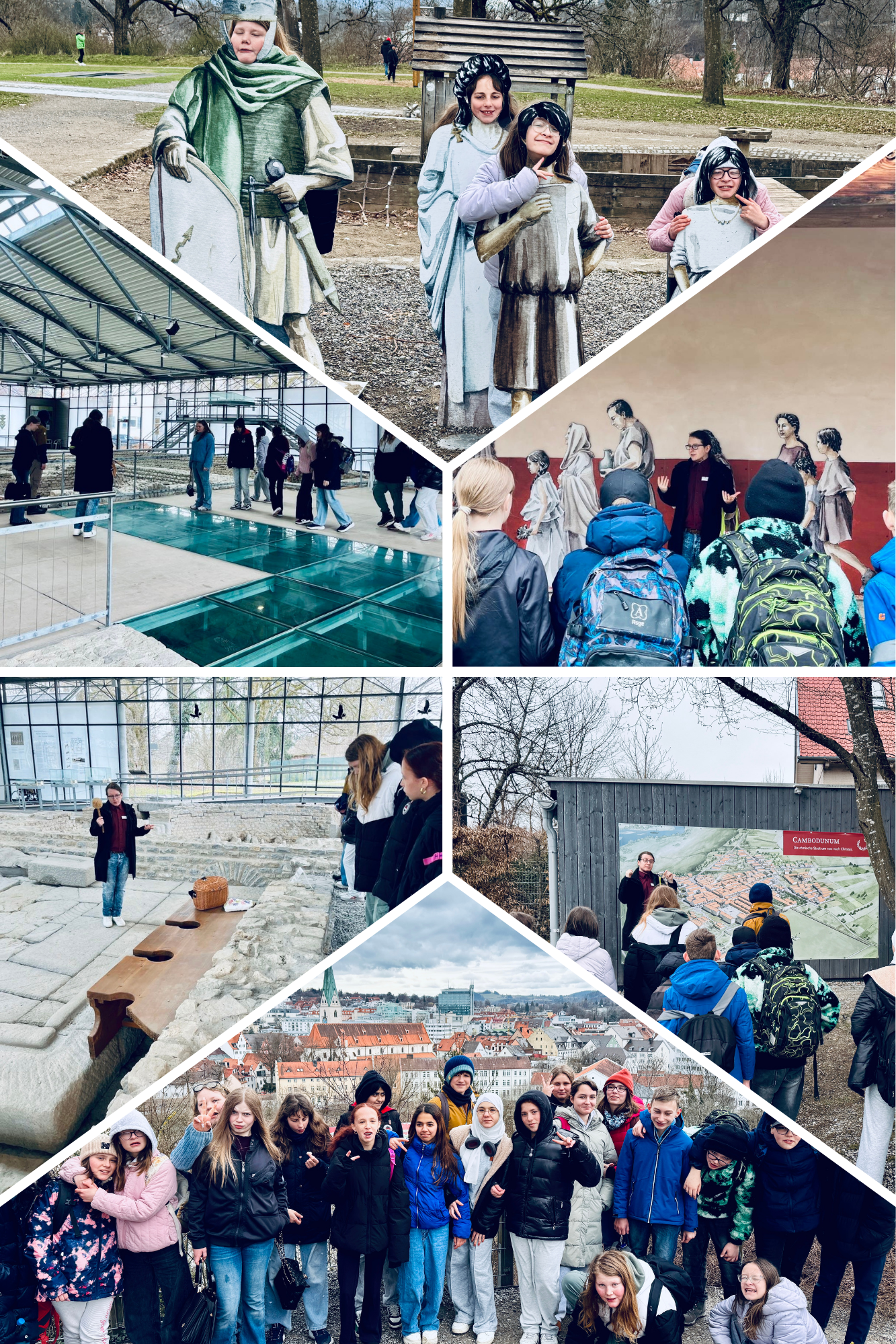 Früher hieß Kempten nämlich Cambodunum. Auf einer alten Stadtkarte erfuhren wir vieles über die damalige Römerstadt. Anschließend sind wir in den Tempelbezirk gelangt. Im Herkules-Tempel erfuhren wir einiges über die Götter. Nach einem Spaziergang durch die alte Siedlung (heute ist dort ein Park), gelangten wir zu den Thermen (damalige Bäder). In der Ausgrabungsstätte sahen wir viele alte Gegenstände, die so tatsächlich von den Römern benutzt wurden. Am Ende des Rundgangs erfuhren wir auch noch mehr über die Latrinen, und wie die Römer „ihr Geschäft“ verrichteten.